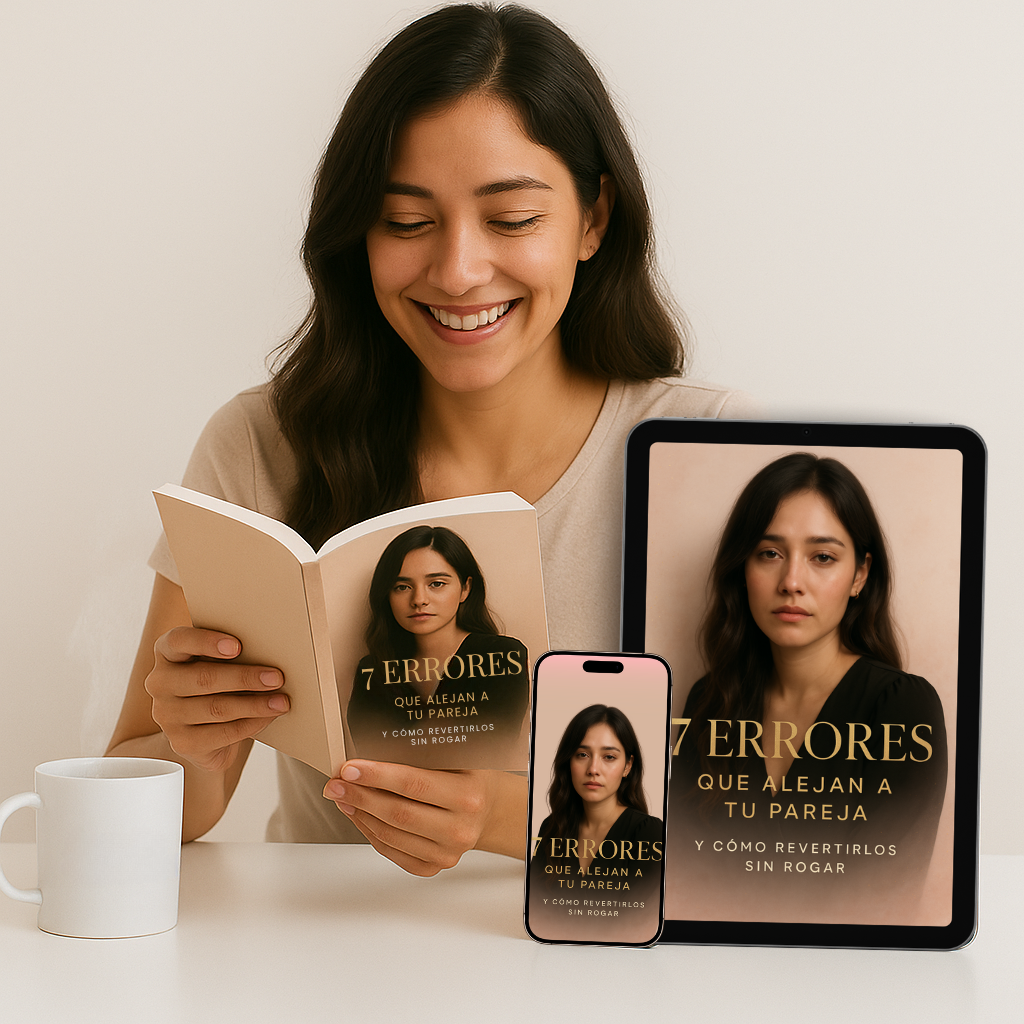 Este ebook te revela los 7 errores silenciosos que destruyen la conexión con tu pareja sin que te des cuenta, y te enseña cómo revertirlos con estrategias simples, sin rogar, sin gritar ni perder tu dignidad.